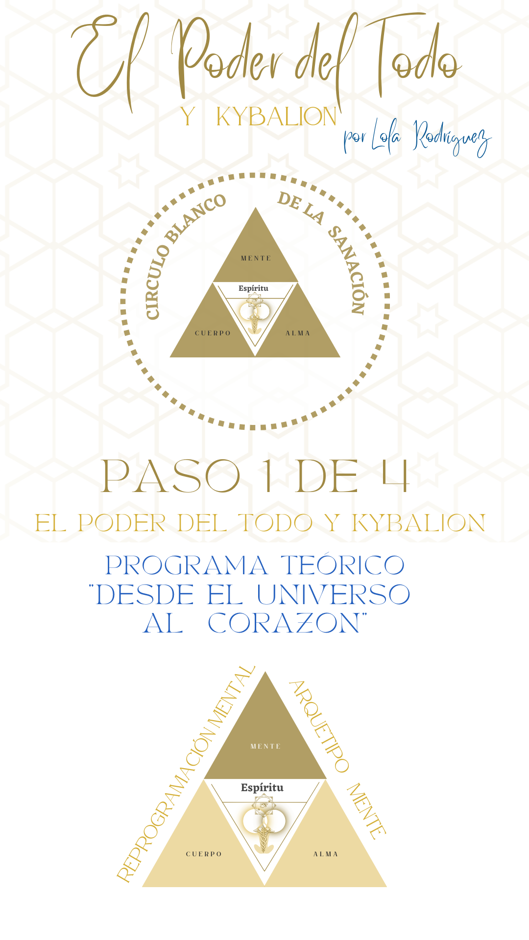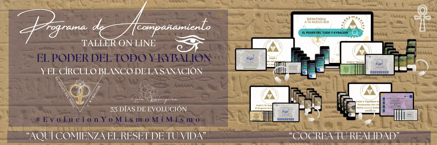 Con el programa de acompañamiento El Poder del Todo y Kybalion, desarrolla tu camino de evolución consciente espiritual y energético en 33 días o 33 retos a través del Círculo Blanco de la Sanación.