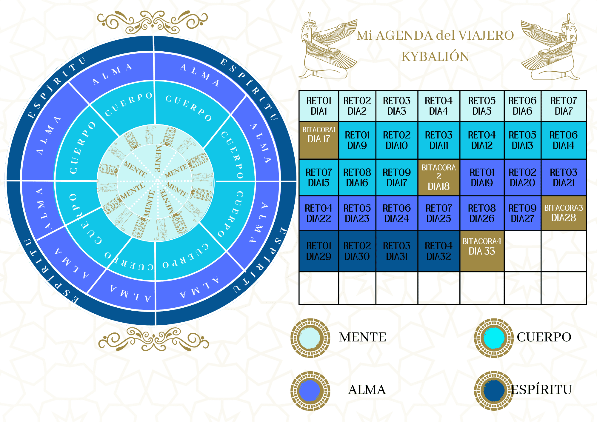 Sigue el proceso de sanación y evolución de Lola Rodríguez con la Agenda del Viajero Kybalion y el Calendario Egipcio Kybalion.