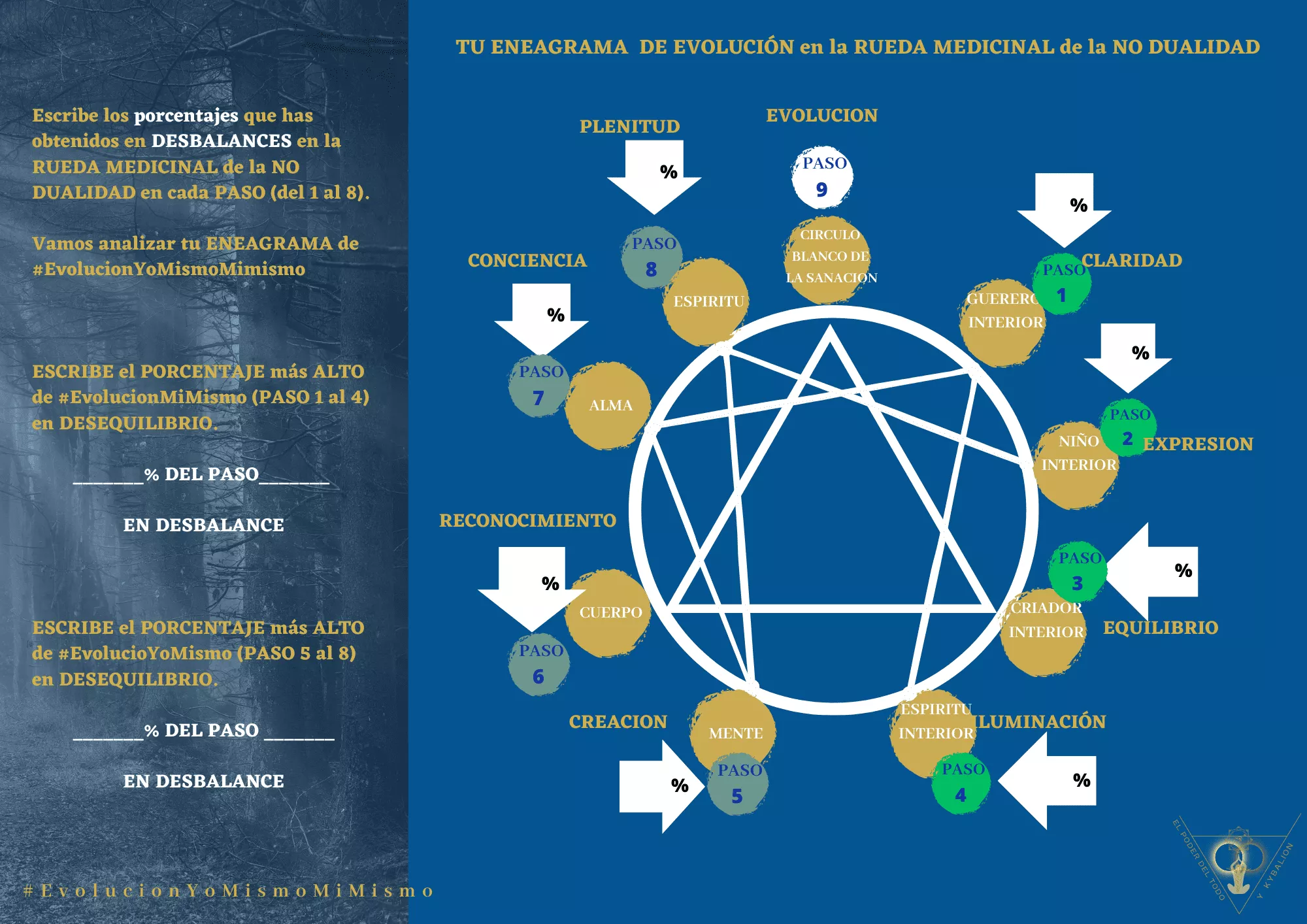 Sana, diagnóstica y analiza la energía discordante de los eneatipos de Evolución 1, 3, 3, 4 #EvolucionMiMismo (Guerrero INTERIOR, Criador INTERIOR, NIÑO INTERIOR, Espíritu INTERIOR) Evolución 5,6,7 y 8 #EvolucionYoMismo(Mente,Cuerpo, Alma y Espíritu)